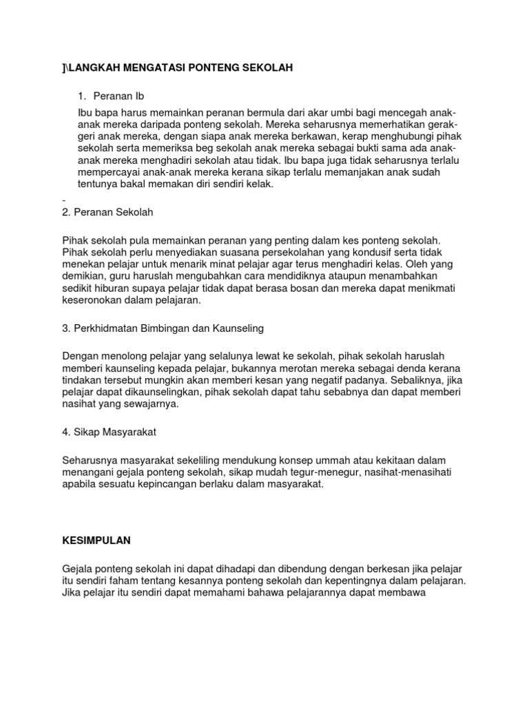 Langkah Mengatasi Ponteng Sekolah Pdf